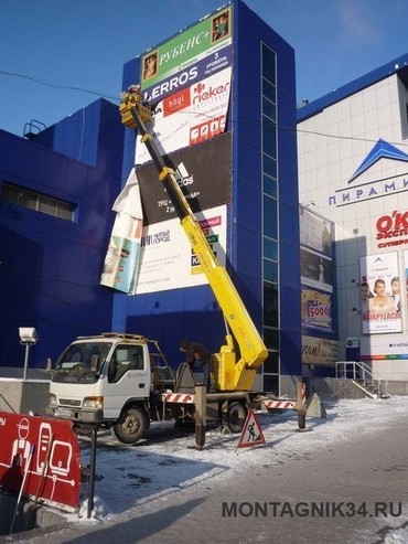 Также наши монтажники осуществляют различные виды работ на высоте, такие как монтаж рекламы (обслуживание и ремонт рекламных конструкций) опиловка деревьев, и т.д.