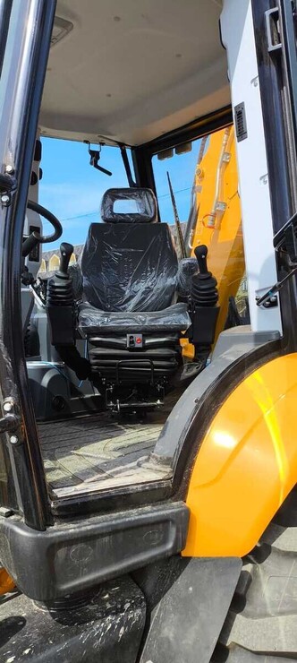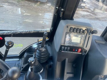 Телескопическая рукоять, фронтальный ковш "4 в 1", гидролиния для подключения гидромолота, радио и проигрыватель CD, ковш "обратная лопата" шириной 600 мм, передние колеса диаметром 20 ", двигатель Perkins 99 л.с. Tier II, КПП Power Shift и мосты "Carraro" (Италия), джойстики, кондиционер.