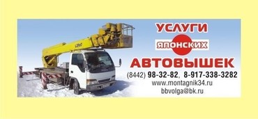 Автовышки любой высотой до 32 метров. Все машины имеют поворотные люльки. Квалифицированные машинисты. Небольшие габариты автомобилей. Возможна круглосуточная работа. Постоянным клиентам скидки. Форма оплаты любая.